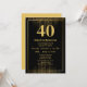 Convite Black Gold Border Glitter Modern 40th Birthday