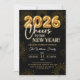 Convite Black Gold Champagne Cheers New Years Eve Party