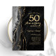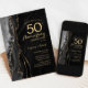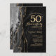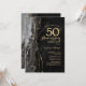 Convite de celebração de aniversário de 50 anos surpresa em preto e dourado com ágata. Design moderno e elegante com fundo de geodo de mármore de ágata aquarela, dourado brilhante falso e fonte de letra script. Cartão de convite elegante perfeito para uma festa de aniversário de casamento sofisticada. Convites Zazzle impressos ou modelo digital para impressão instantânea.
