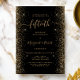 This elegant modern 50th anniversary party invitation features faux gold glitter borders on the left and right edges. The customizable text combines gold-colored handwriting, copperplate and italic fonts on a black background. The reverse side features a matching black and gold glitter design.