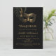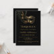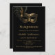 Invite your guests to an evening of mystery and sophistication with this elegant black and gold masquerade invitation. The design features a beautifully detailed Venetian-style mask with feather accents and refined gold typography — a timeless choice for a formal or black-tie celebration.