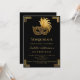 Invite your guests to an evening of mystery and sophistication with this elegant black and gold masquerade invitation. The design features a beautifully detailed Venetian-style mask with feather accents and refined gold typography — a timeless choice for a formal or black-tie celebration.