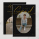 Convite Black & Gold Oval Foto Moderno Script de Graduação