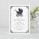 Elegant Gothic Baby Shower Invitation. Our Gothic Baby Shower Invitation features a beautiful black ornate gothic-style stroller set against a pristine white background, all enclosed within an elegant frame Personalize with your details.