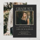 This modern graduation photo design features a black background with classic typography and a centered portrait layout. Ideal for high school or college celebrations, it pairs a senior photo on the front with a second image on the back for a polished announcement and party invite combination. The clean structure keeps event details clear while maintaining a formal, elevated feel. Personalize with name, school, and class year for a refined 2026 graduation celebration.
