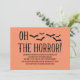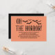 Prepare-se para uma noite terrivelmente divertida com este ousado convite para festas de Halloween, com a frase brincalhona "Oh o horror" em tipografia assustadora, cheia de morcegos voadores e talento estranho. Colocado contra um fundo laranja vibrante com design de texto preto nítido, este convite atinge o equilíbrio perfeito entre assustador e legal. Ideal para encontros com temas embutidos, festas de cocktail de Halloween ou comemorações apenas de adultos, o simples layout e a design moderna tornam fácil mostrar os detalhes do seu partido com estilo. É preciso ter para ter bons momentos.