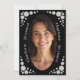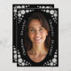 For an elegant 40th (or any age) birthday party. A black background. Personalize and add a name and age. Add your photo into oval frame. Decorated with faux diamonds.