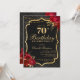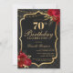 Celebrate in unforgettable style with this dramatic black and gold 70th birthday invitation. Featuring an elegant ornamental frame, rich red florals, and a luxe-inspired layout, this design is perfect for a sophisticated evening celebration.