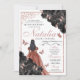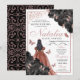 Elegante Convite de Aniversário de Quinze Anos Floral Preto e Dourado Rosa