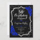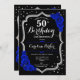 Convite Black Silver Royal Blue Foto 50º aniversário
