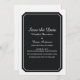 Anúncio de Salvar a Data de Casamento moderno e chique Simply Elegant com um design elegante de emblema de bilhete preto. Este design clássico e sofisticado é fácil de personalizar com os detalhes do seu casamento. Para mais opções de personalização, clique em Personalizar.