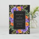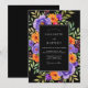 This design features a deep black backdrop that emphasizes the rich hues of purple roses and bright orange poppies. Lush greenery and verdant leaves surround the blossoms, creating a moody and sophisticated aesthetic. The high-contrast palette is ideal for an evening affair or a late autumn event, offering a bold and artistic look.