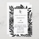 White background decorated with black botanical pattern and text. Personalize and add your monogram, initials and the details.