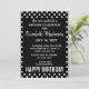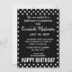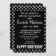 Este convite, com um fundo preto, apresenta um padrão de bolinhas branca, perfeito para celebrar o aniversário de alguém. Personalize o texto para corresponder à sua ocasião especial.