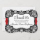 Convite Black/White/Red Damask Shaped Sweet 16 Girls Party