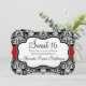 Na moda, elegante e colchete elegante, em forma de presilha, design de fundo preto e branco, com fita vermelha e forma de quadro branco. Um estilo feminino giro. Todos os Designs Copyright © CustomInvitesOnline.com