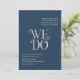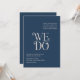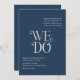 Convite moderno de casamento com um layout mínimo com "Nós fazemos" em tipografia ousada no meio. Todos os elementos de design estão em azul e marfim marinho empoeirado e podem ser alterados na ferramenta de edição design. Este simples mas elegante convite de casamento é excelente de um casamento informal ou formal.
