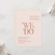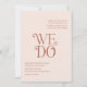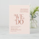 Convite moderno de casamento com um layout mínimo com "Nós fazemos" em tipografia ousada no meio. Todos os elementos de design estão em tons sujos de deserto e podem ser alterados na ferramenta de edição de design. Este simples mas elegante convite de casamento é excelente de um casamento informal ou formal.
