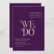 Convite moderno de casamento com um layout mínimo com "Nós fazemos" em tipografia ousada no meio. Todos os elementos de design estão em ameixa roxa e marfim e podem ser alterados na ferramenta de edição de design. Este simples mas elegante convite de casamento é excelente de um casamento informal ou formal.