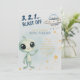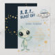 Adorable alien and spaceship graphics make these blast off third birthday invites cute and fun!