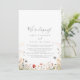 Este cartão de recepção de elopemento de flor silvestre boho é perfeito para um moderno partido de elopemento poste. A design apresenta flores cor-de-rosa, roxa, esbranquiçada, amarela, azul empoeirado, vermelha, silvestre burgundy montadas em um padrão floral perfeito e delicioso, evocando beleza natural. As placas RSVP são vendidas separadamente.