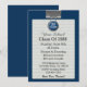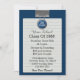 Um clipe com aparência de metal com enfeite em forma de botão azul, segurando um papel de nota escolar pautado. Contra um fundo azul escuro. Ótimo para qualquer reunião de turma do ensino médio ou faculdade.