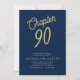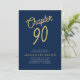 Celebre o aniversário de 90 do seu amado com este belo convite de aniversário de azul e ouro. Os sotaques dourados fazem este convite se destacar e realmente capturar a grandeza da ocasião. Com cartolina premium e cores elegantes, esses convites são a forma perfeita de dar o tom a uma festa de aniversário chica e memorável.