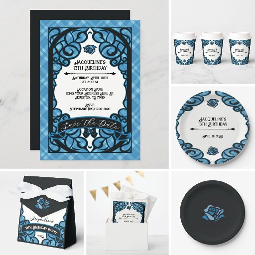Blue Gated Rose Princess Birthday PartyCriado por FreshFunky Retro