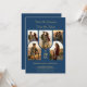 Stylish double graduation invitation with five arched photo placeholders and gold faux effect accents on blue background for two graduates
