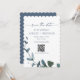 Convite Blue Botanical Leaf Save the Date w/QR + Image