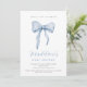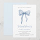 Celebrate an elegant boy baby shower with this blue bow party invitation, featuring a pretty watercolor illustration on a clean white background. Ideal for high tea, garden parties, or any baby celebration - honoring the mother to be in sophisticated style.