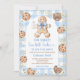 Convite Blue Bow Gingerbread Christmas Baby Shower Gingham