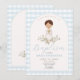 Convite Blue Boy Modern Greenery Baptism Gingham