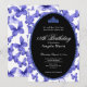 This elegant blue and black 18th birthday invitation has blue butterflies, a blue tiara crown, and a blue glitter oval with a personalizable template to create your own message. The invitation template is customizable in the listing editor and is also available as a digital download that's printable after you personalize it. It's a classic style that's perfect for a family event to celebrate a milestone birthday.