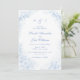 Blue Chinoiserie Floral Blue Text White background invitation.