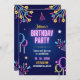 Convite Blue Colorful Neon Birthday Party Invitation