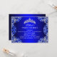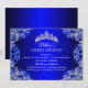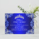 Convite de Aniversário Sweet 16 Azul. Design elegante de damasco azul com pérolas & tiara prateada. Por favor, note: Todas as imagens planas, elas não têm joias reais!