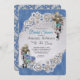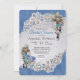 Placas de textura de Denim decoradas com rendas de creme branco e Jewelry de Costume para este tema de papel de carta de casamento.