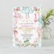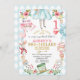 Blue Diamond Heart Alice One-derland primeiro aniversario Invitation Sweet Alice no convite de aniversário de um derland apresentando vários itens da história em um fundo de diamante azul. A design também inclui um coração vermelho e o número um e um banner dessa maneira. Este convite de aniversário de Alice no País das Maravilhas também apresenta uma imagem de texto de folha de ouro falsa que é removível.