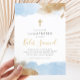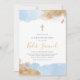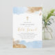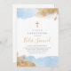 Uma moderna aquarela azul e um convite batismo falsa para brilhar ouro. O design perfeito para seus garotos batizando ou batismo.