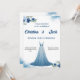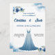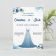 Torne seu dia especial inesquecível com este convite de casamento em aquarela deslumbrante, apresentando um lindo vestido de baile azul e delicados acentos florais azuis. O design etéreo combina um fundo suave em aquarela com flores e folhagens em azul marinho, criando uma atmosfera elegante e romântica. Perfeito para um casamento de verão, este convite inclui espaço para os detalhes da cerimônia, informações do recebimento e RSVP. A ilustração do vestido fluido adiciona um toque único e moderno que destaca este convite. O texto personalizável permite que você personalize todos os detalhes, mantendo a sofisticada paleta de cores azuis. Ideal para casamentos formais, cerimônias em jardins ou qualquer celebração onde a elegância encontra o estilo moderno.