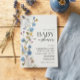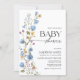 This template is part of the blue baby shower floral collection characterized by watercolor spring and summer wildflowers and floral modern high-class fonts that shape the trends of the present and future festive events.