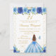Convite Blue Floral Brown Hair Princess Festa de aniversár