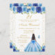 Convite Blue Floral Dark Skin Princess Birthday Party