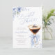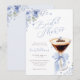 An elegant bridal shower invitation featuring a refined espresso martini illustration with a delicate blue bow accent.