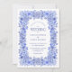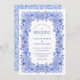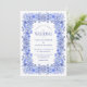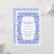 Digam "oui" para estilar com este design de flor silvestre, azul e branca! Desenhado de padrões chineses elegantes e de filmes florais franceses, ecoa o aspecto da porcelana de gengibre clássica e do brinquedo elegante. É só para esquinas de verão, brunches de jardim chic, ou qualquer evento com um tema azul clássico. Personalize agora para adicionar um toque de charme de eterno ao seu evento.