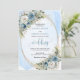 Set the tone for an unforgettable celebration with this elegant watercolor wedding invitation, beautifully designed with dusty blue florals, soft white peonies, and delicate eucalyptus