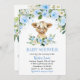 Convite Blue Floral Highland Cow Chá de fraldas Invite