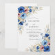 A whimsical watercolor design featuring vibrant blue blossoms and soft pink petals scattered amidst delicate dried grasses. The artistic brushstrokes evoke a dreamy, airy atmosphere with a natural, botanical feel.