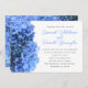 Light blue hydrangea flowers wedding invitations. White paper with black printed text. Full names of the bride and groom are in blue script. The back of the paper is covered in light blue flowers.